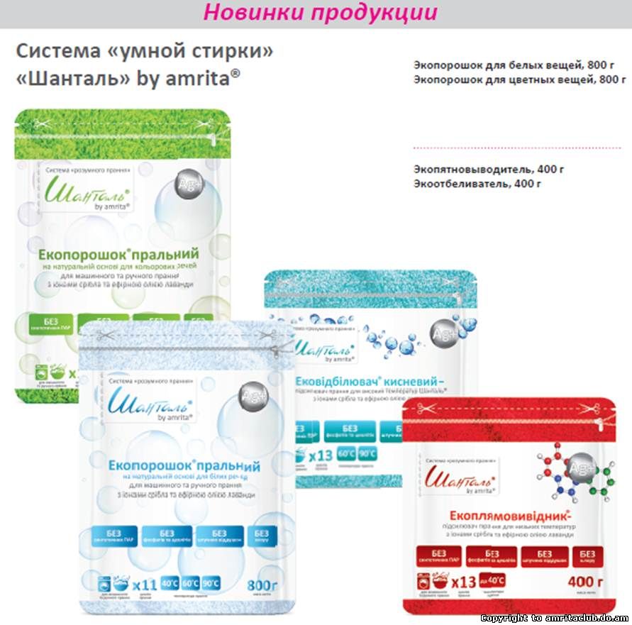 Рады сообщить, что с 15 апреля 2013 года в продаже доступны демонстрационные тест-наборы Экотоваров для дома — система «умной стирки» «Шанталь» by amrita®.