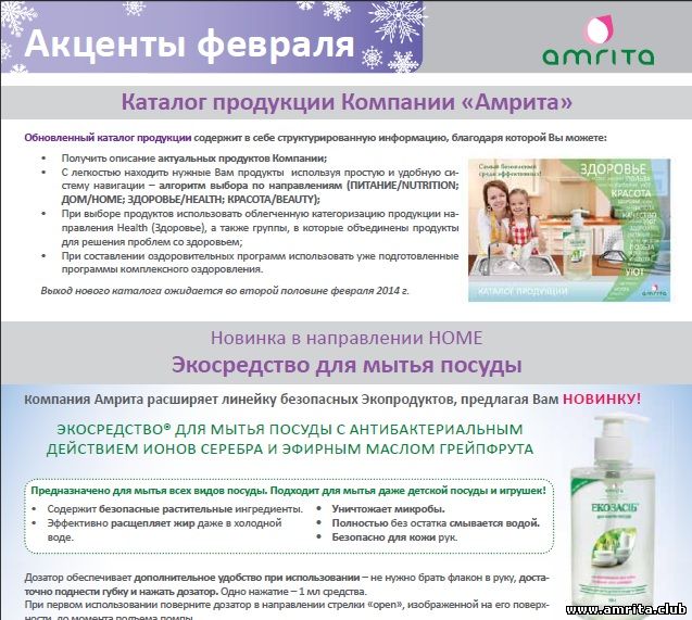 06 Фев Электронные издания и презентации Акценты месяца: февраль 2014 Опубликовано Amrita.club 05.09.2023 0 Акценты февраля – вся информация в одном листе. Предлагаем Вашему вниманию информационный лист с актуальными новостями об акциях, прогр... Продолжить чтение