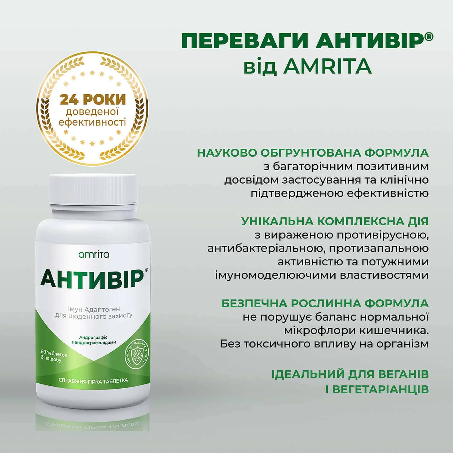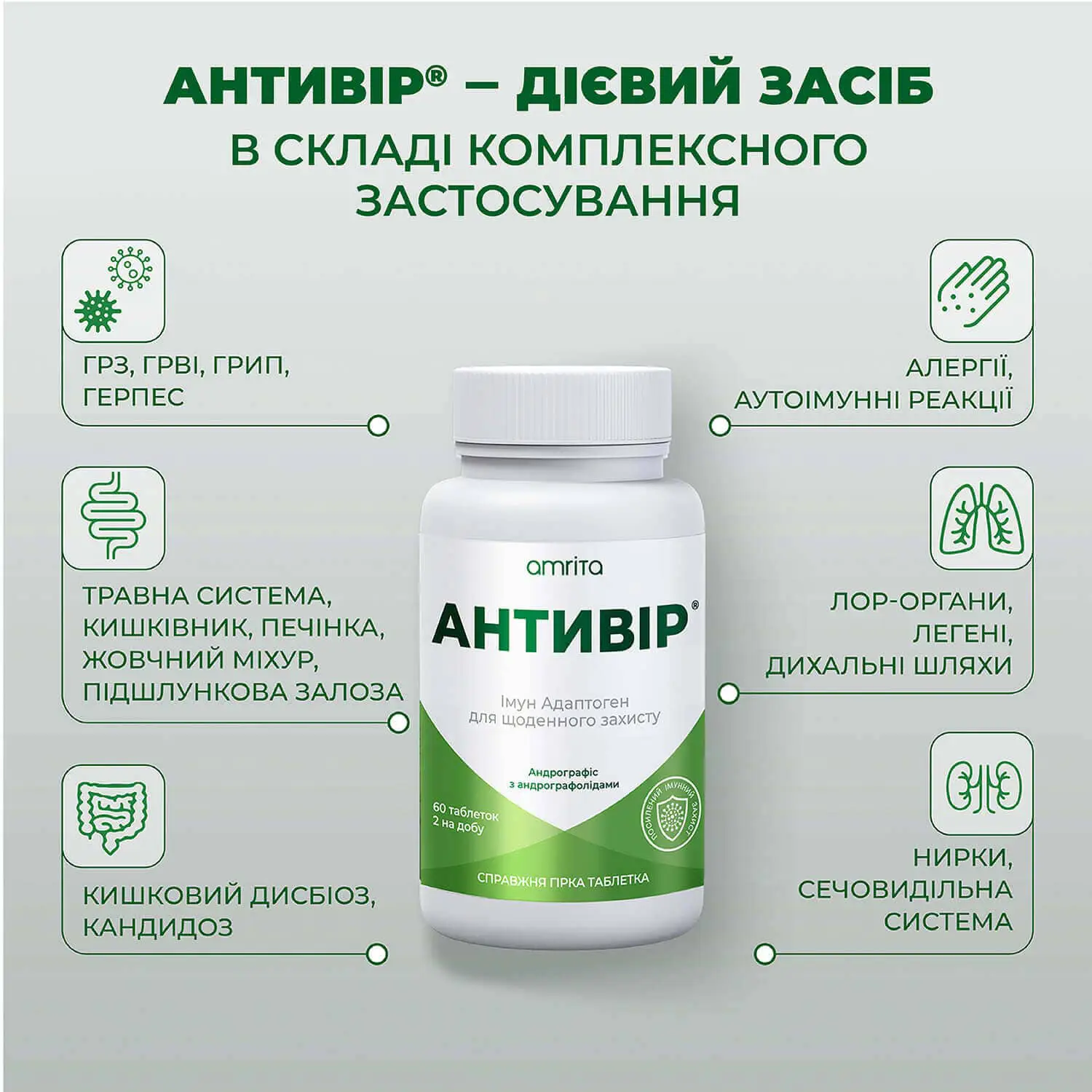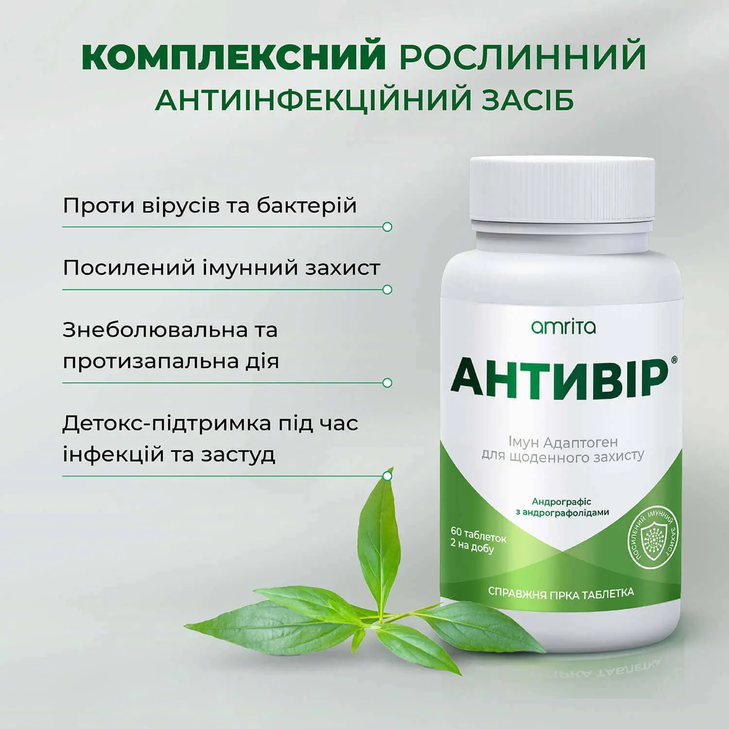 Антивир® от Amrita усовершенствованный природный комплекс с андрографолидами для укрепления иммунной защиты организма и противодействия вирусным, бактериальным и воспалительным процессам.