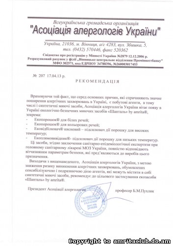Дерматологически протестирован. Одобрен МОЗ Украины. Рекомендовано Ассоциацией аллергологов Украины как безопасное средство для чистоты дома, как гипоаллергенное и полностью безопасное средство. Подходит для людей с чувствительной кожей и подверженных аллергическим реакциям, а также детским вещам. Не тестируется на животных.