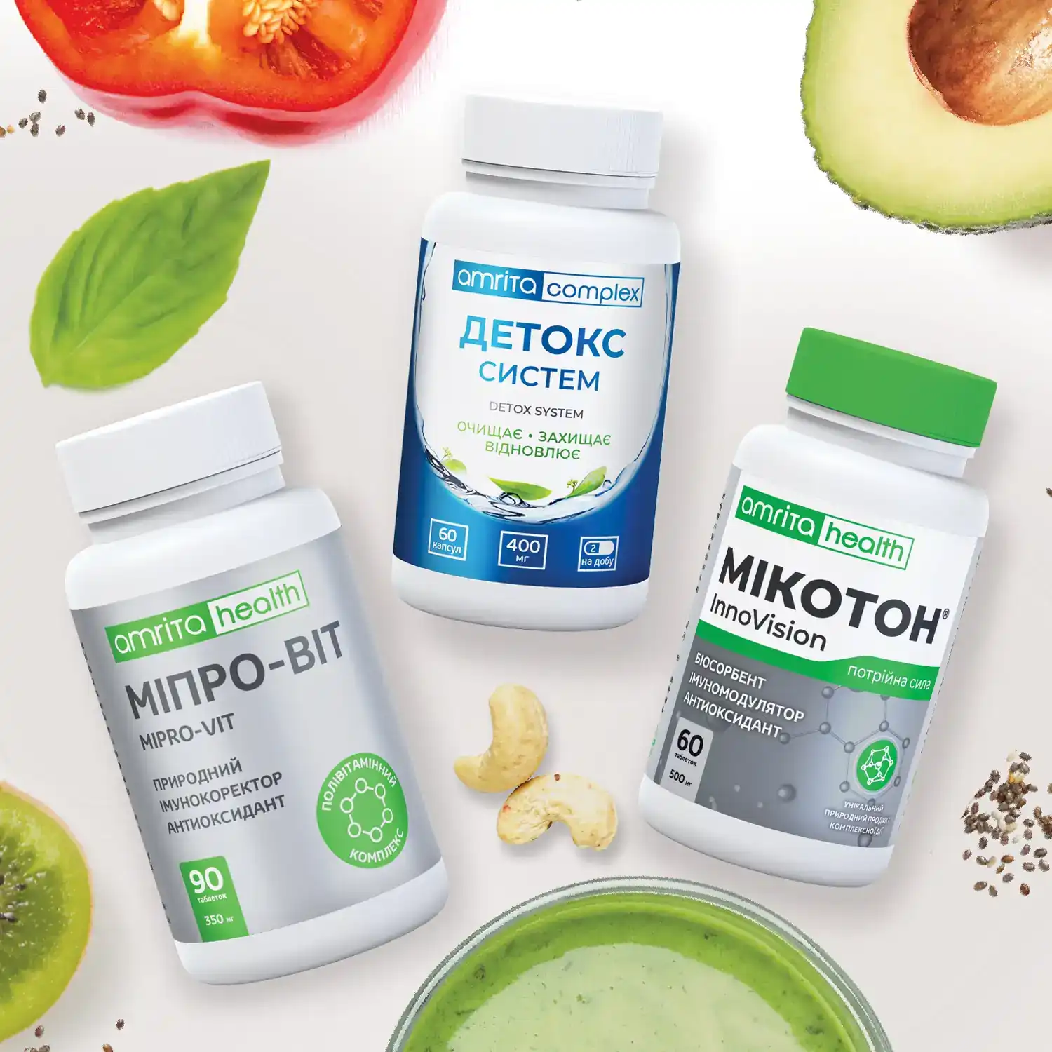 ** в составе набора — по одной упаковке Детокс Систем, Микотон Innovision, Мипро-Вит