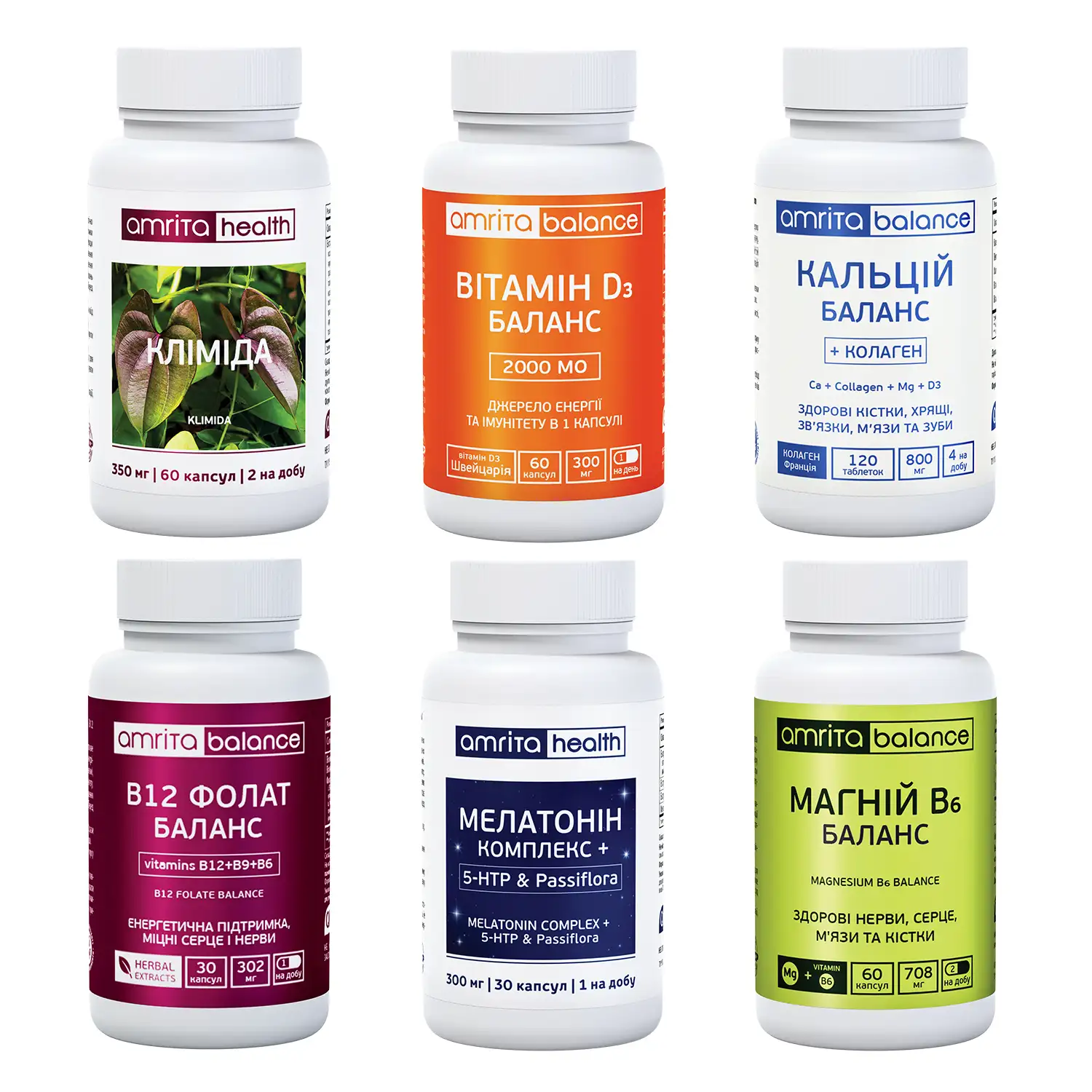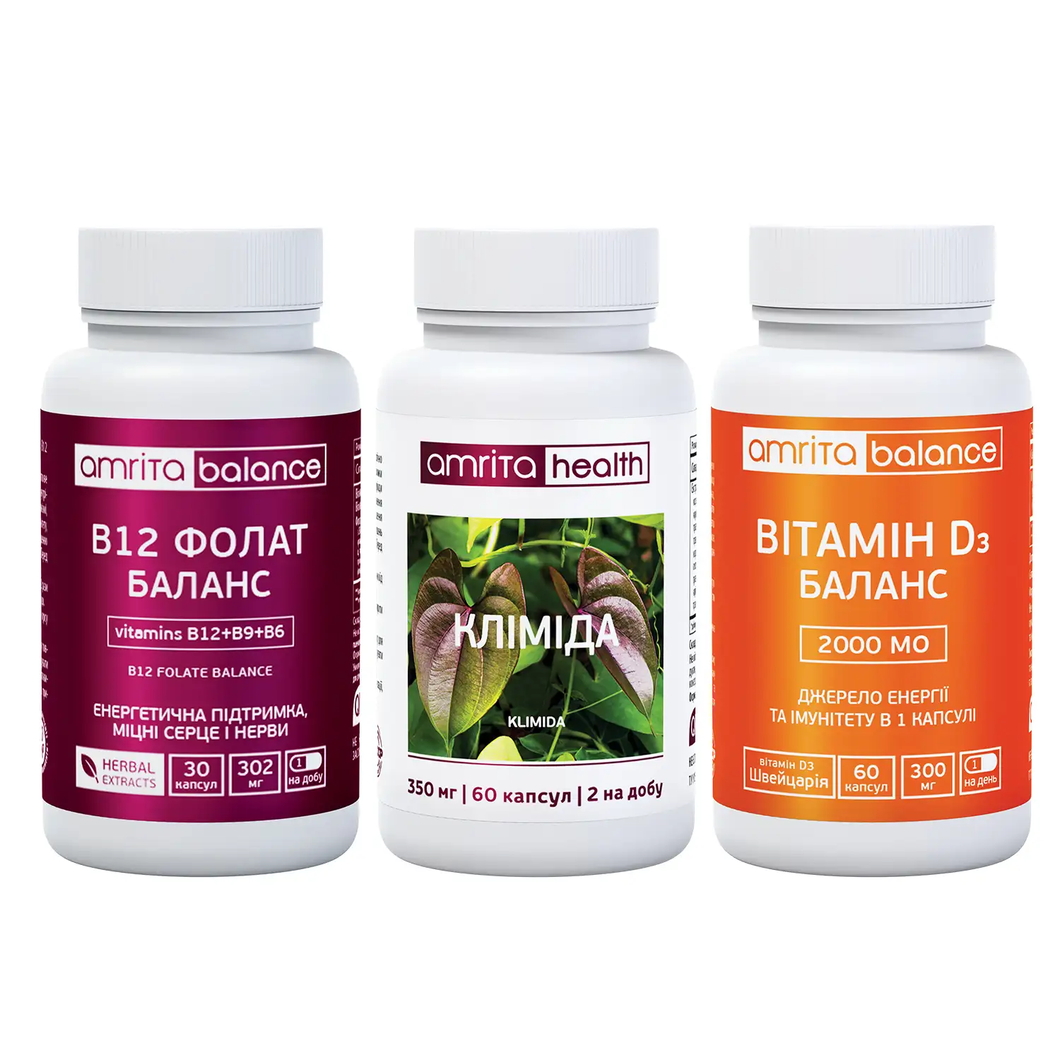 Базовый состав комплекса: «Климида», «Витамин Д3 Баланс 2000 МЕ», «В12 Фолат Баланс»