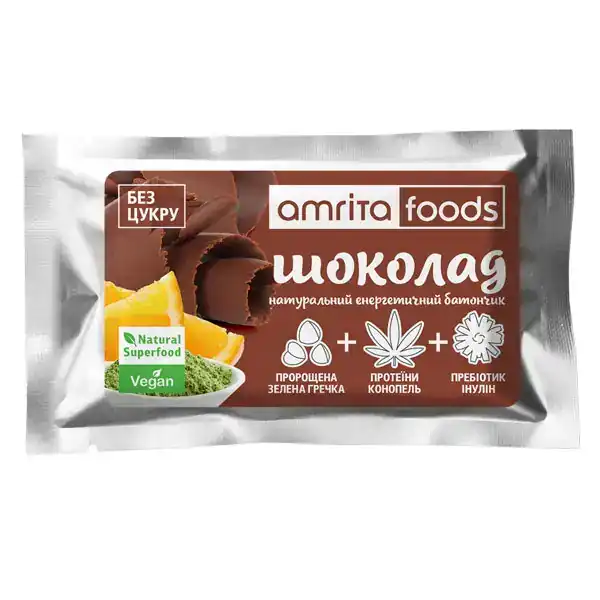Натуральные компоненты: финики, изюм золотистый, тертый бельгийский шоколад, какао, гречка зеленая пророщенная, апельсин сушеный, семена подсолнечника, конопляный протеин, инулин цикория, семена чиа, спирулина
