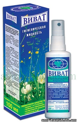 ВИВАТ — высокоэффективное фармацевтическое, гигиеническое и косметическое средство для наружного применения, обладающее широким спектром антимикробной активности и выраженным антигрибковым, антивирусным, обезболивающим и дезодорирующим действием. Задерживает рост грамположительных (стафилококк и антракоид) бактерий, дрожжеподобных грибков рода Кандида и другой патогенной микрофлоры.