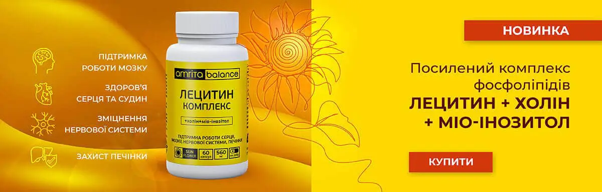 «Лецитин Комплекс + холин и мио-инозитол» от Amrita – уникальный комплекс ненасыщенных жирных кислот и фосфолипидов подсолнечного лецитина (фосфатидилхолина, фосфатидилинозитола, фосфатидилетаноламина, фосфатидилсерина), холина и инозитола для поддержки работы мозга, сердечно-сосудистой и нервной систем, восстановлению и защите клеток печени.