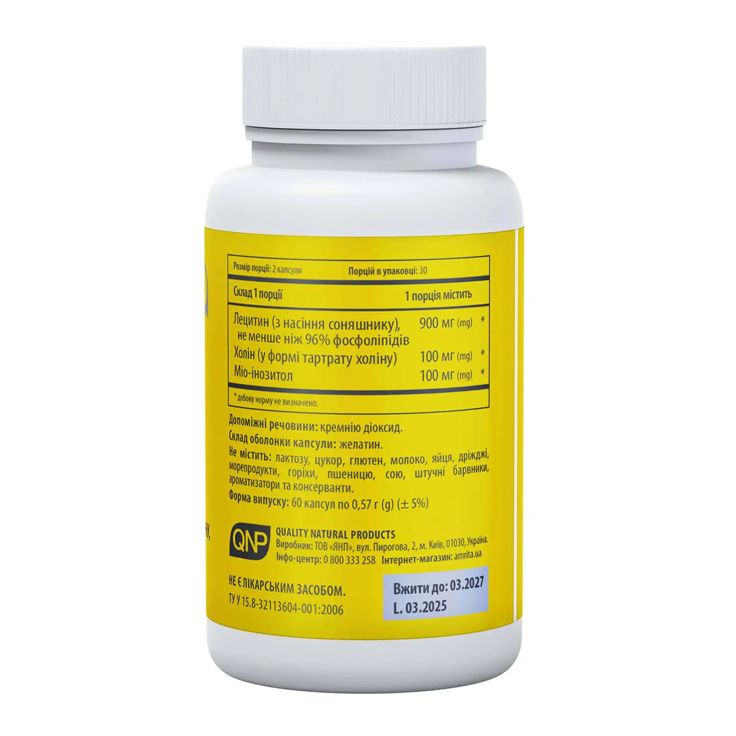 Активные компоненты: лецитин (из семян подсолнечника) не менее 96% фосфолипидов, холин (в форме тартрата холина), мио-инозитол.