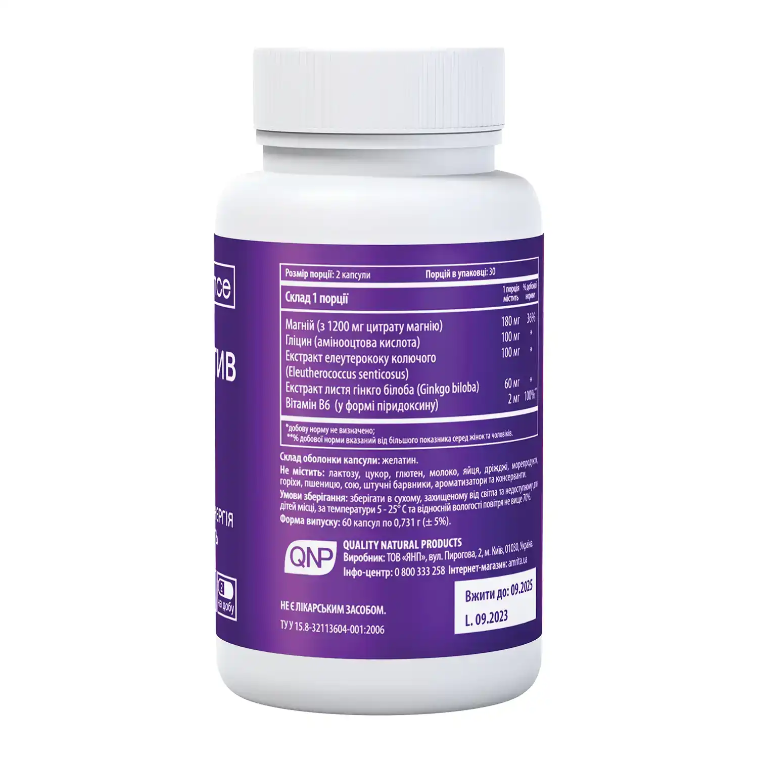 Натуральные компоненты: магния цитрат, экстракты: элеутерококка, гинкго билобы, глицин, витамин B6.
