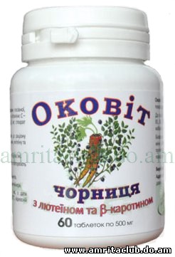 Состав: переработанные и высушенные плоды моркови посевной, черники; листья брусники, цветки календулы, лютеин, витамины С, Е, В6, В2, В1.