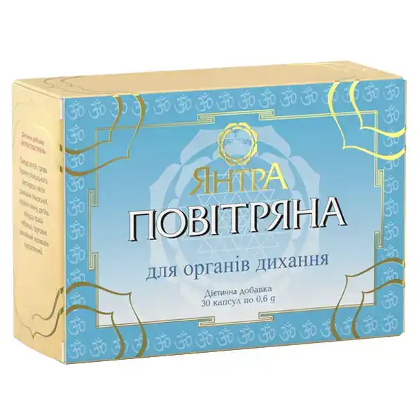 Биологически активная добавка «Янтра Воздушная» разработана отечественными учеными и специалистами для введения в рацион питания лиц, страдающих заболеваниями органов дыхания, сопровождающихся бронхообструктивным синдромом. Биологически активные вещества растительного происхождения, входящие в состав «Янтры Воздушной», благоприятно влияют на состояние органов дыхания и устраняют спазм бронхов.