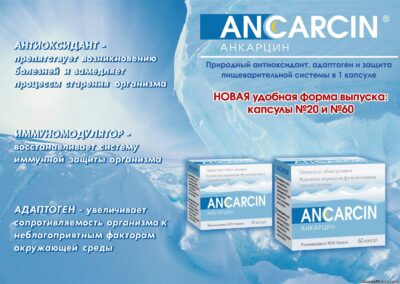 Анкарцин – біотехнологічний продукт-антиоксидант для базового очищення організму на клітинному рівні, відновлення обмінних процесів в клітинах і зниження ризику злоякісного переродження.