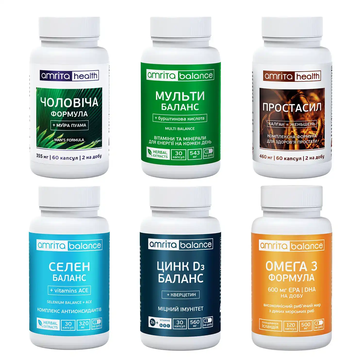 Додаткові продукти: «Простасил калган + женьшень», «Цинк Д3 Баланс + кверцетин», «Омега 3 формула».