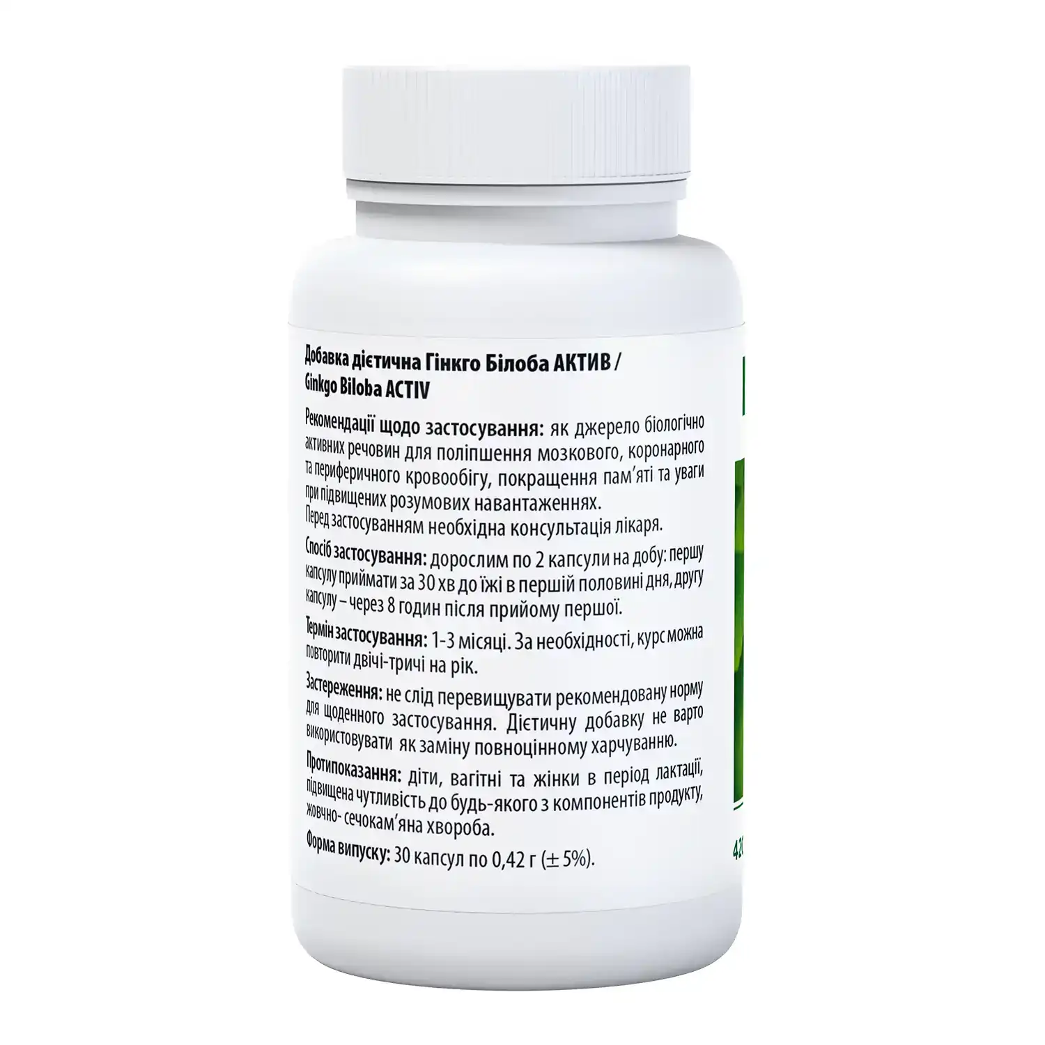 Рекомендації щодо застосування Гінкго Білоби Актив + лецитину: як джерело біологічно активних речовин для поліпшення мозкового, коронарного та периферичного кровообігу, покращення пам’яті та уваги при підвищених розумових навантаженнях. Перед застосуванням необхідна консультація лікаря.