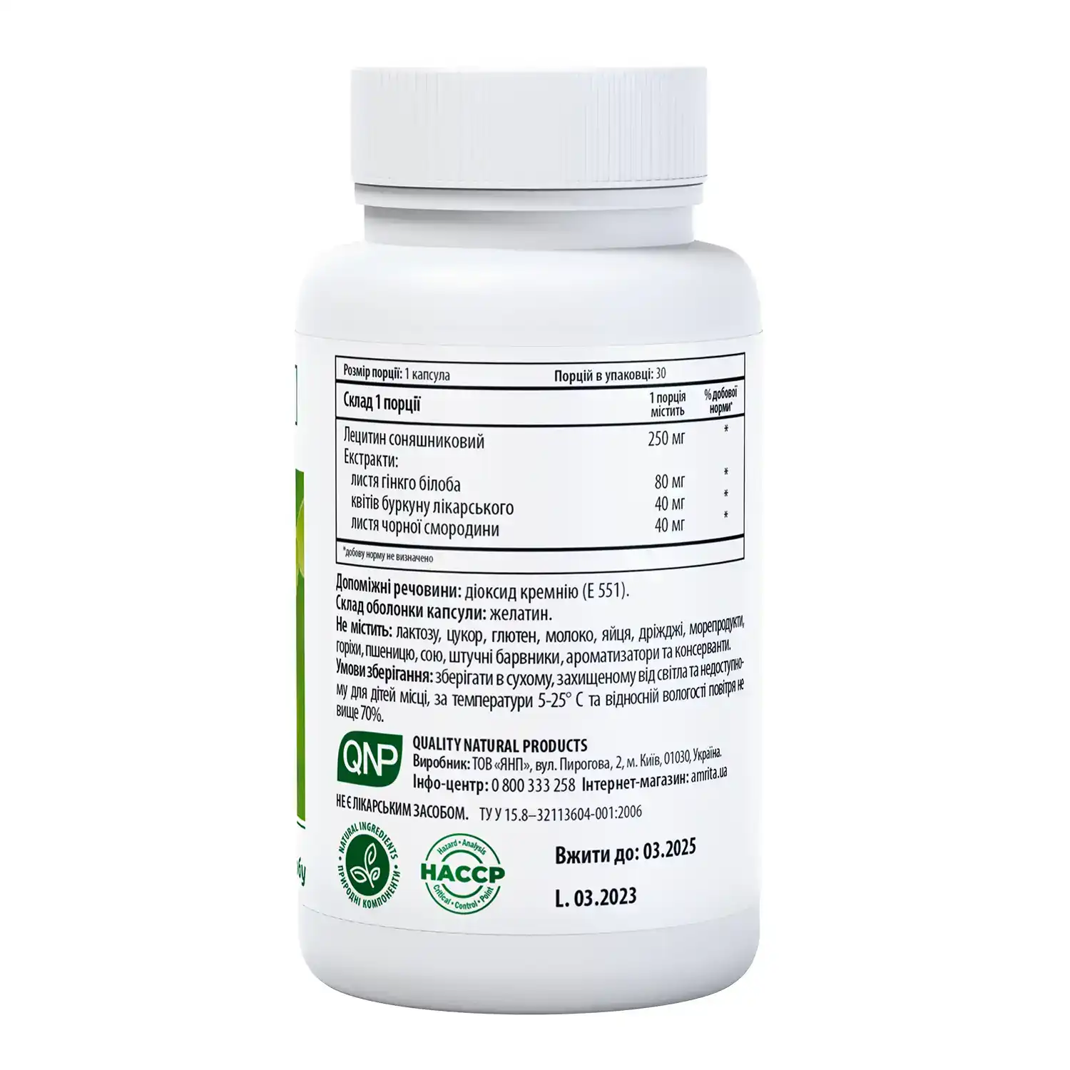 Активні компоненти: лецитин, екстракт гінкго білоба сухий, екстракт квітів буркуну лікарського сухий, екстракт листя чорної смородини.