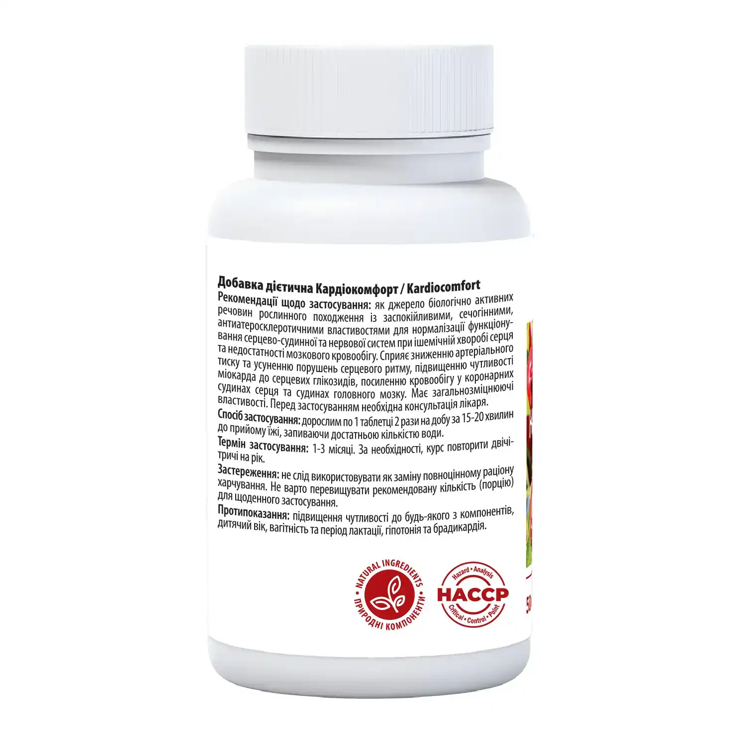 Рекомендації щодо застосування Кардіокомфорту: як джерело біологічно активних речовин рослинного походження із заспокійливими, сечогінними, антиатеросклеротичними властивостями для нормалізації функціонування серцево-судинної та нервової систем при ішемічній хворобі серця та недостатності мозкового кровообігу. Сприяє зниженню артеріального тиску та усуненню порушень серцевого ритму, підвищенню чутливості міокарда до серцевих глікозидів, посиленню кровообігу у коронарних судинах серця та судинах головного мозку. Має загальнозміцнюючі властивості. Перед застосуванням необхідна консультація лікаря.
