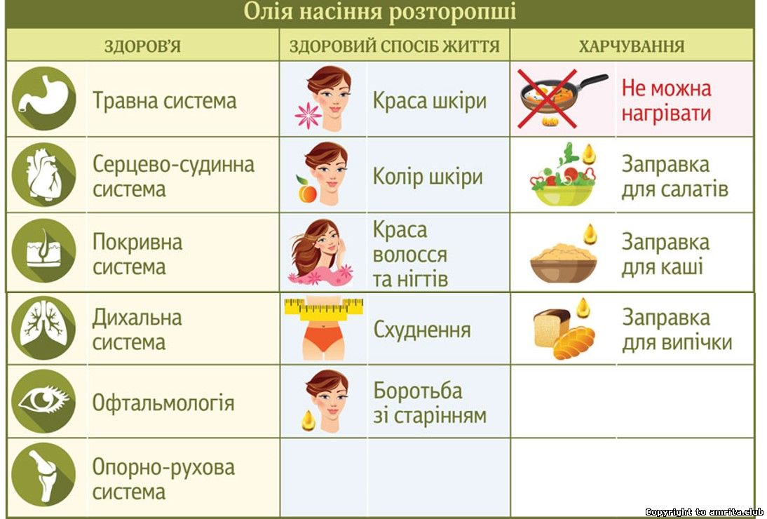 Рекомендації щодо застосування: в раціоні харчування, як багате джерело вітамінів Е, D, К, F, поліненасичених жирних кислот: омега 6 і омега 9, силімарину.