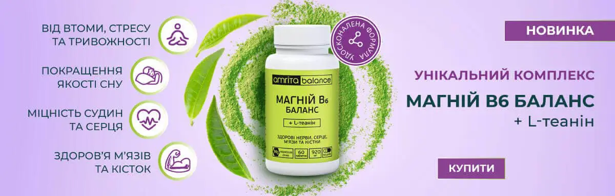 «Магній В6 Баланс + L-теанін» від Amrita – унікальний комплекс легкозасвоюваного магнію з вітаміном В6 та лецитином в поєднанні з амінокислотою L-теанін для нормалізації функціонального стану нервової системи. Надає заспокійливу і розслаблюючу дії. Сприяє зменшенню дратівливості та тривожності. Допомагає знизити фізіологічні реакції на стрес, такі як рівень кортизолу, серцевий ритм та кров’яний тиск. Позитивно впливає на відновлення емоційного комфорту і нормалізації якісного сну. Дієвий при м’язових судомах, відчутті поколювання в м’язах.