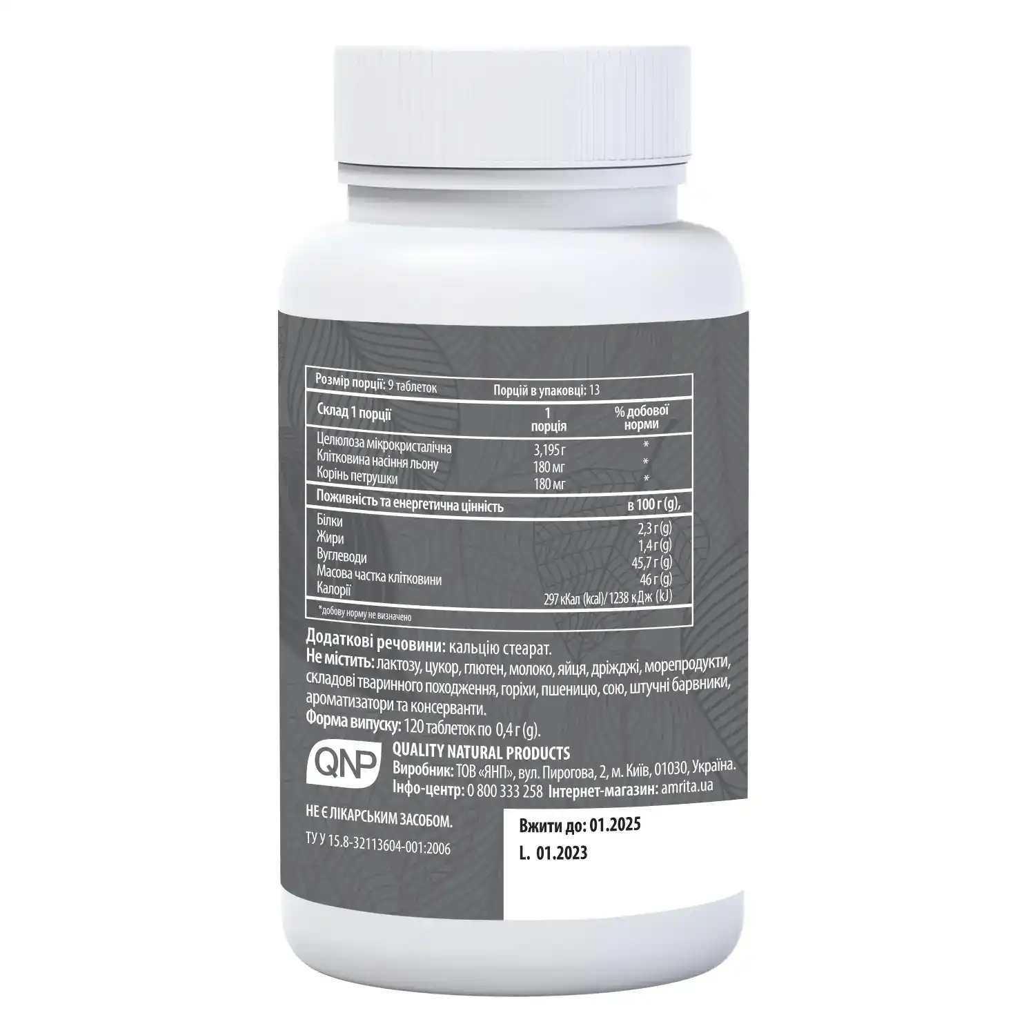 Активні компоненти: целюлоза мікрокристалічна, шрот льону, корінь петрушки.
