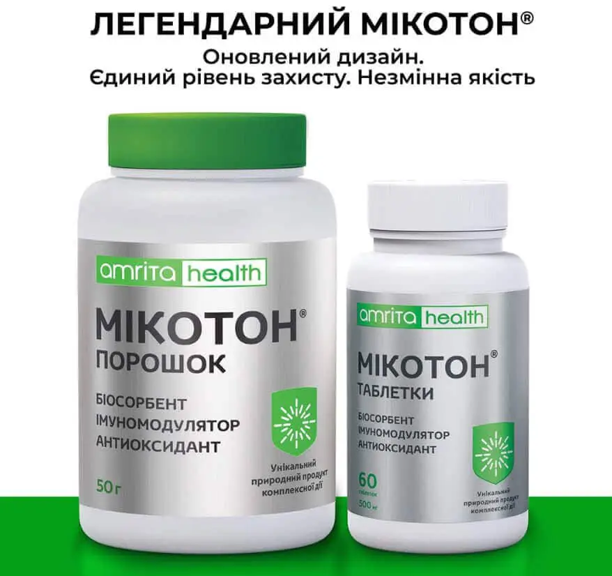 Унікальний природний продукт. Мікотон ефективний в комплексній терапії для усунення першопричин багатьох захворювань і тому має широкий спектр дії. Сприяє загальному оздоровленню організму і усуненню інтоксикації при гострих отруєннях.