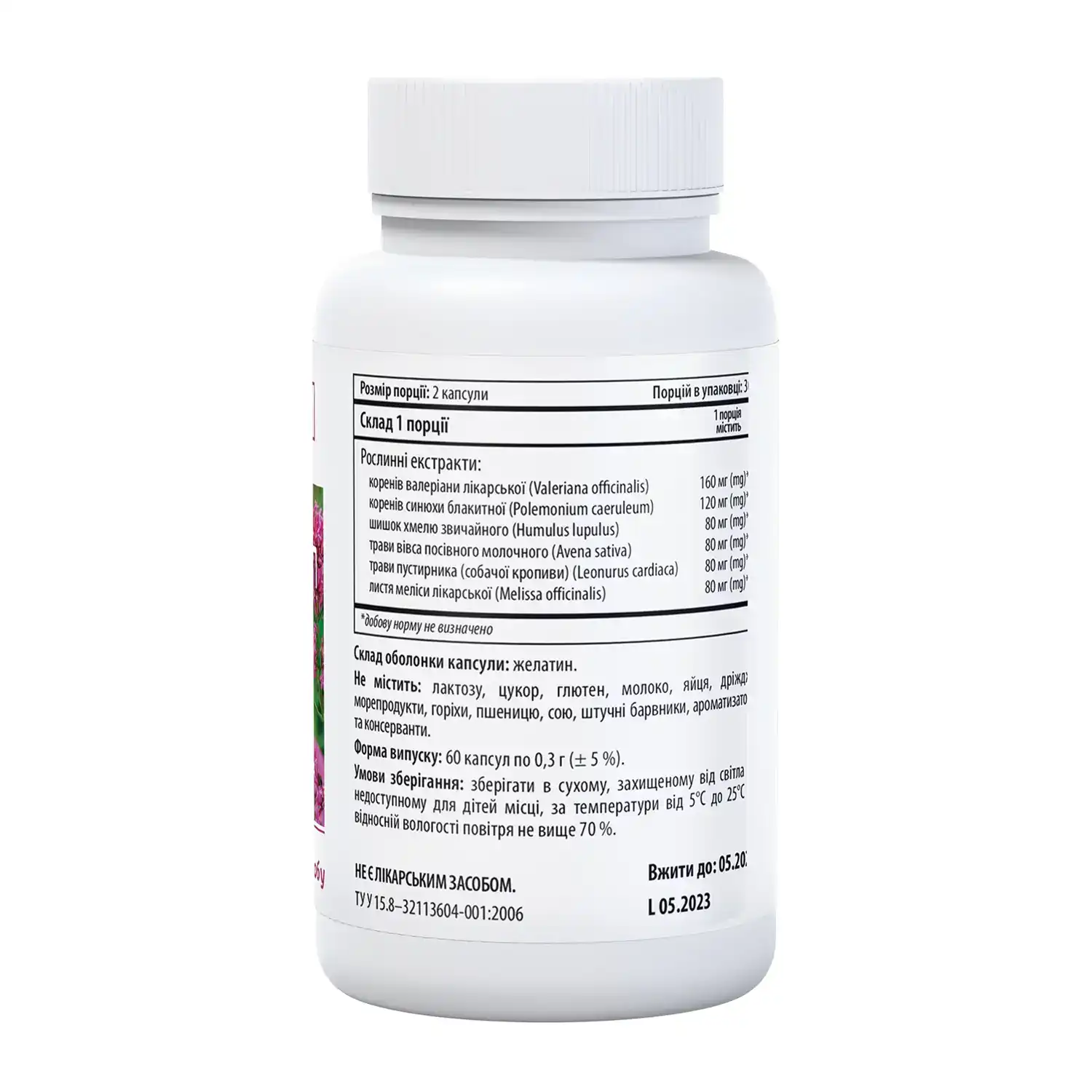 Натуральні компоненти: екстракти валеріани, синюхи блакитної, шишок хмелю, трави вівса, пустирника, меліси.
